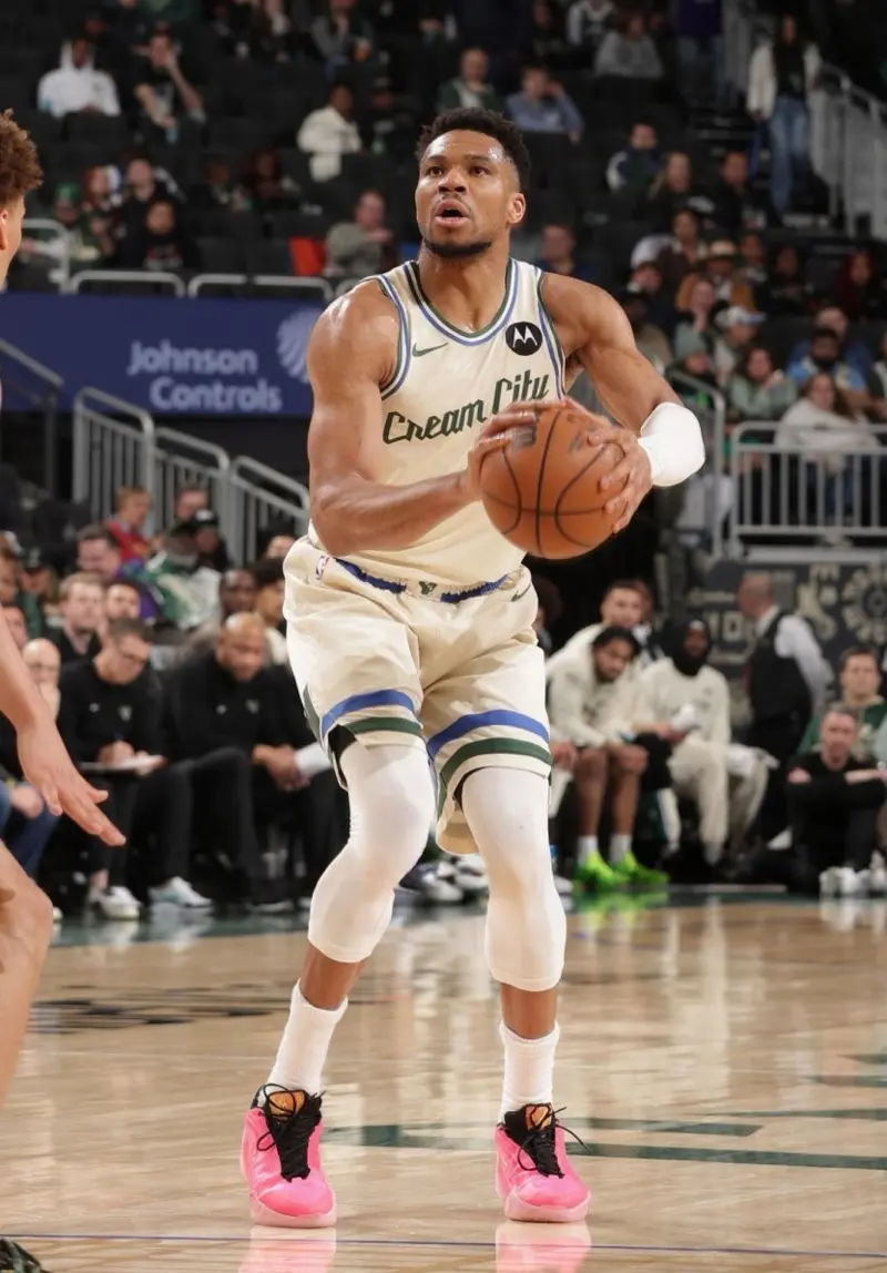 比赛中,阿德托昆博上脚Nike Giannis Freak8。